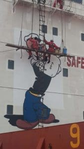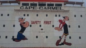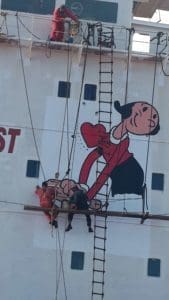 במהלך ההפלגה במבצע מורכב, איפשר קפטן גול-ורדי לצוות לאייר את גשר האניה, שגודלה כ 300 מטר באיורים של ה Sailor-Man הכי מוכר בעולם וזוגתו. הרי הם פופאי ואוליב.