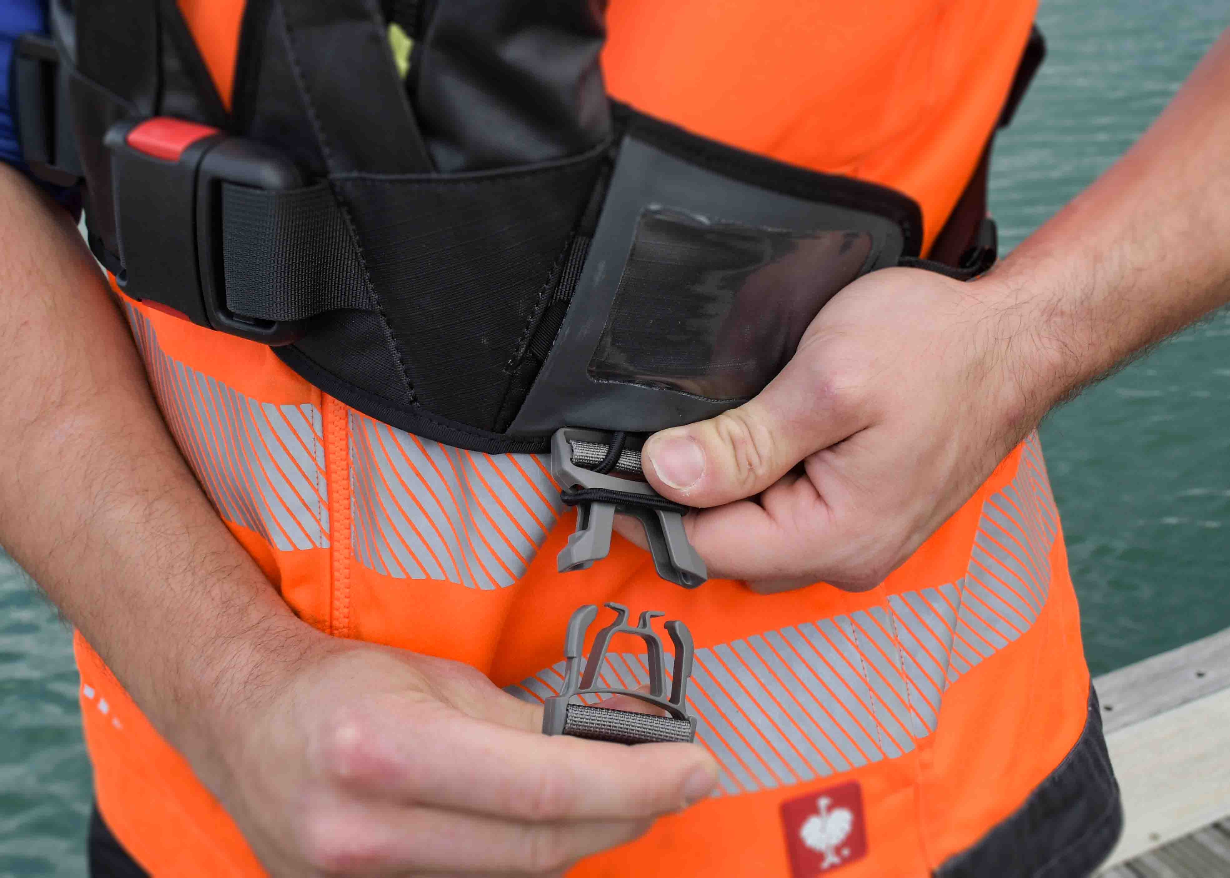 - Deckvest LITE+ כולל רתמת בטיחות משולבת לסיפון עם נקודת חיבור לקו בטיחות לולאה רכה.